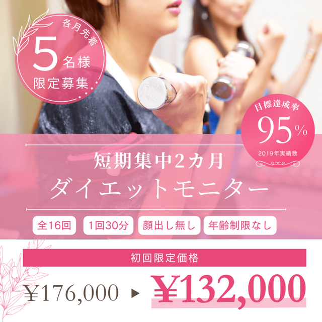 【2ヵ月短期集中ダイエット】結果にこだわるパーソナルトレーニング!